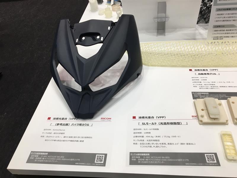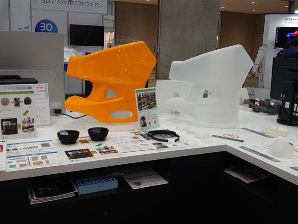 300mm角の大型造形ができ、0.01mの高精細な積層ピッチを実現、 さらに純正以外の様々な材料が使え、ディアルヘッドでサポート専用材を使うことで 様々なニーズにお応えできる機種となっております。 本展示会では3Dスキャナーとの「リバースエンジニアリング」をお客様 事例を用いて展示、実演致しました。
