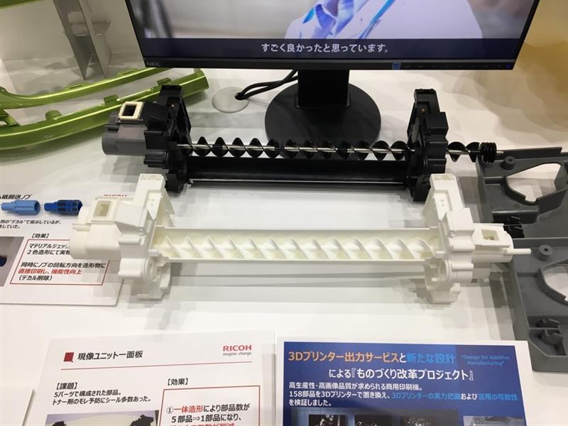 リコーでは3Dプリンターによるものづくり改革事例として「3Dプリンターで造形した部品を搭載した商用印刷機の検証を実施致しました。