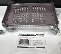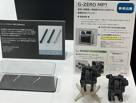 また、PEEKをベースにした高機能材料「POTICON(ポチコン)」の造形に適した次期新製品 G-ZERO MP1の造形サンプルも参考出展し、高速+高精度+高強度に加え、高耐熱性+高耐薬品性を持つ部品でお客様から高い評価を頂きました。