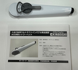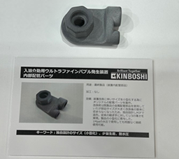 金星様においては小ロット生産製品における最終製品の部品製作に3Dプリンターを積極活用されており、今回部品をお借りして展示した介護施設向け介助用マイクロバブル発生装置の中にも3Dプリンターで造形された部品が所々に利用されており、製品開発スピードの短縮や部品製造コストの削減を実現されています。
