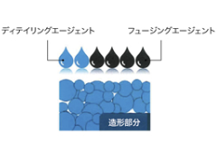 その上にフュージングエージェント(溶融促進剤)とディテイリングエージェント(表面装飾剤)を毎秒3000万滴で高速噴射します。
