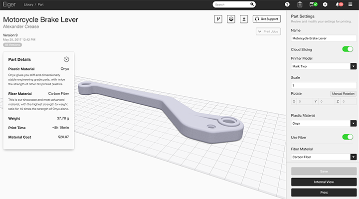 ソフトウェアの観点でもクラウド型の制御ソフトEigerは造形準備データの用意、造形シミュレーション、装置の制御など一貫して管理できる多機能ソフトでありながら操作方法が直感的でわかりやすい優れたソフトウェアだと思います。創業者がソリッドワークス出身ということもあり、設計現場のことをよくわかっていることもあるかもしれません。