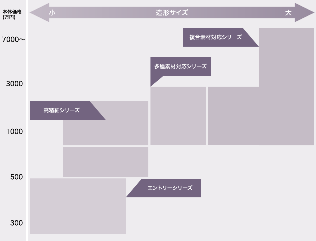 インクジェットヘッドから噴射した樹脂を、紫外線で固めて積層する方式です。高精細で滑らかな表面のモデルを造形しやすく、精度が求められる造形物の出力に力を発揮します。機種によっては複数の素材を選択し、混ぜて使うことも可能です。紫外線で硬化する樹脂を使う特性上、造形物は太陽光での劣化が起こりやすくなります。