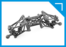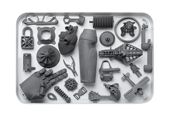 パーツを統合した一体部品や可動部品などの複雑な形状を一発で造形可能。工数削減につながります。また、豊富な種類の材料が使えて、硬い部品から柔らかい部品まで造形できます。