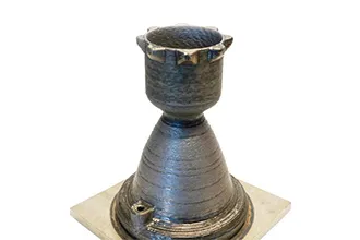 AZ600は一般的な溶接ワイヤーを材料として使用しているため低コストで運用が出来ることが特徴であり、また、複雑なワイヤー送給制御と回転テーブルとの協調制御を行うことで精度の高い積層造形が可能です。