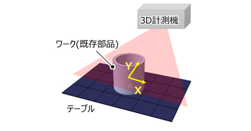 Lasermeister 100A シリーズでは、既存部品への付加積層造形を行うにあたり、自動で位置決めを実施する機能を有しており、通り出し作業は必要ありません。