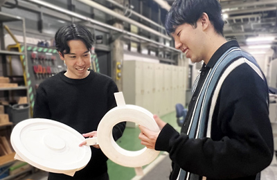過去に先輩方がリコーさんに発注した滑り面と摩擦振子の造形物は品質もよく、震動実験も問題なく出来ていましたが、今回はさらに発展させた研究を行うために過去に3Dプリントしたサイズよりも大きく、より強度が必要な滑り面と摩擦振子を製作する必要がありました。私達は3Dプリンターを初めて活用するため、3Dプリンターで製作したパーツの強度やモデルデータ通りに形状が再現ができるのかが分かりませんでした。しかしリコー3Dプリンター出力サービスでは依頼したデータを単にそのまま造形するのではなく、造形依頼前に専任技術者に相談することができ、懸念点や希望する条件で造形ができるのか、造形材料は何が良いのか等を教えてもらうことで理解、納得した上で発注することができました。また滑り面のパーツは角度を細かく変化させた複雑な形状を含んでおり、モデルデータ通りに造形ができるのか不安でしたが、実際に造形する際にはそこに配慮した姿勢で造形してもらい希望通りに造形できたのも良かったです。
