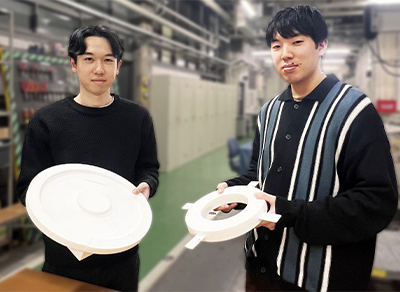 秋山研究室では暮らしを支えるインフラ 構造物の安全・安心を確保するために超免震構造・高耐力構造、長寿命化技術の研究や開発を行っています。研究を進める上で摩擦振子型免振構造の開発に向けて震動実験を行いますが、これまではその実験で使用する滑り面と摩擦振子というパーツを金属で製作していました。しかし摩擦係数が大きく、また滑り面は凸形状で表面には複雑な角度をつける必要があるため製作コストが高くなっておりました。そのため、金属以外の他の材料や製作工法にて製作ができないかを検討していました。その後、過去に卒業した先輩方が同様のパーツをリコー3Dプリンター出力サービスに3Dプリントの依頼をしていたことを知り、今回相談することにしました。