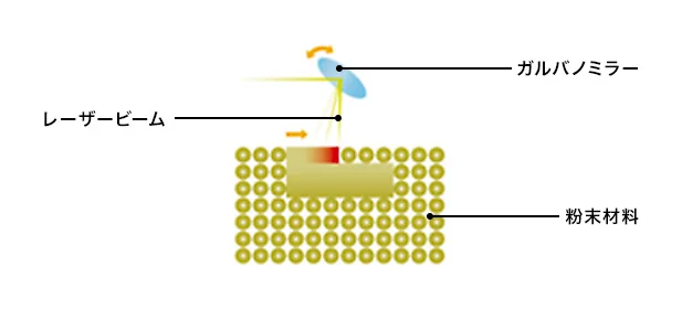 熱源としてレーザー光を用いた樹脂PBFです。PBFとしても最も古くから用いられている方式で、多量の造形物を一度に作るため大型造形機が各社から発売され、造形量の多い企業に使用されてきましたが、近年は小型で安価な製品も発売されています。