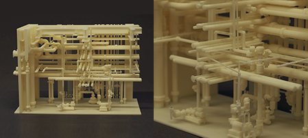 建設現場での施工方法を検討するため、現場で使用する部材からボルト1本まで忠実に成形したり、実物大のモックアップを用意したりと、今日の3Dプリンターは建築物や大型機械の"本物"を再現することにも役立っています。