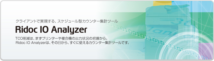 オフィスのネットワーク環境の中で、複合機やプリンターなど複数の機器の利用状況を的確に把握するのは、管理者の方にとって大きな負担となっています。管理システムの導入がその解決法といえますが、システム環境の整備、サーバー管理者の配置など、運用までの多くのプロセスが必要でした。しかし、「Ridoc IO Analyzer」なら、機器の一元管理をサーバーレスの環境で実現。さらに、Webからのダウンロードにより、すぐに運用を開始できます。