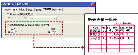 | [設定例] | キーワード『報告書』位置『ページ右上』 ⇒ 設定条件『両面・集約・モノクロ』 |