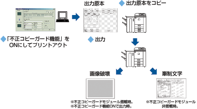 | 不正コピーガード機能 プリントアウトからの不正コピー/情報漏えいを抑止 |