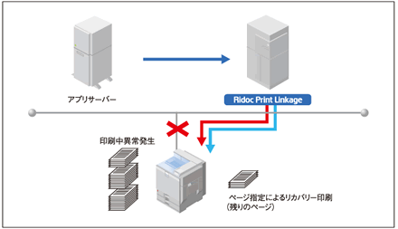 開始ページを指定して印刷が止まった続きのページから印刷することができます。特に大量ページの印刷ジョブでは、ページの重複を防いでムダのないリカバリー印刷を実現します。