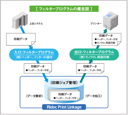 統合コンソール(JP1/Integrated Management)、JP1管理基盤(JP1/Base)との連携により「Ridoc Print Linkage」のログをシステム全体で統合管理できるため、運用管理の工数削減につながります。