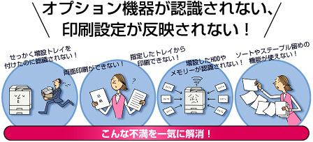 クライアントプリンターの自動作成機能ではデフォルトの最小機器構成になってしまうので、オプション機器を利用することができません。