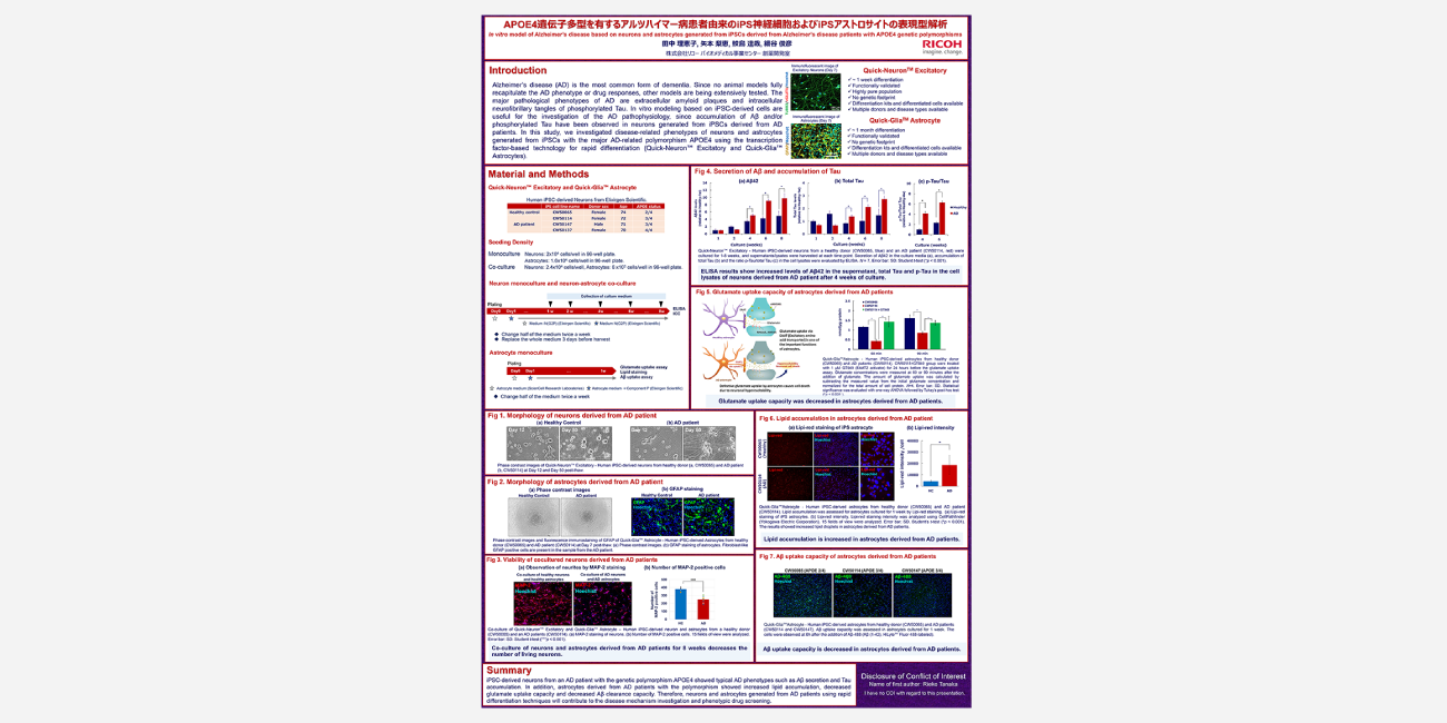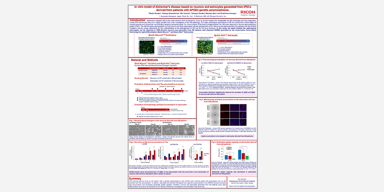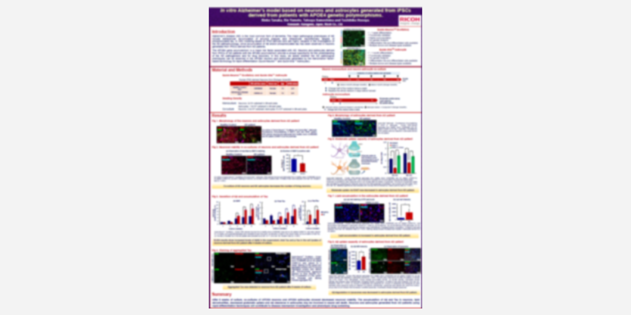 In vitro model of Alzheimer’s disease based on neurons and astrocytes generated from iPSCs derived from patients with APOE4 genetic polymorphisms.(NEURO 2024 日本神経科学大会)