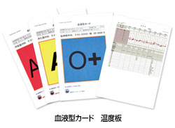 体温・脈拍・血圧・呼吸数などの基本的サインをグラフ化して表示する『温度板』や患者様のベッドサイドに掲示し輸血のミスを防ぐ『血液型カード』、薬の効能や形状・色を表示した『薬事情報シート』などです。「理解性、間違いを防ぐという意味でもカラー印刷は必須です」(鈴木様)。