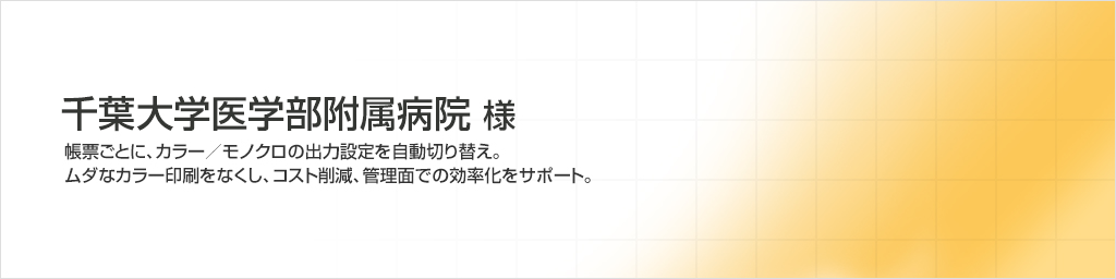 患者様を中心とした質の高い医療の提供と先端医療研究、優れた医療人の育成を行っている千葉大学医学部附属病院様。懸案だったカラー印刷の制御を、リコーの自動プリント設定ソリューション『Ridoc IO DataSelector』が解決。印刷環境の効率化、コスト削減の徹底をサポートしています。