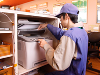 サービスステーションに設置している複合機の入れ替えを検討するにあたり、いくつかの課題があった。たとえば設置場所とスペースの問題。従来使用していた複合機はマシンサイズも大きく、メンテナンス時にはマシンの横を開けて操作をするなど作業スペースも多く必要となるため、手狭なサービスステーションにおいてマシン置き場所の確保は容易でなかった。