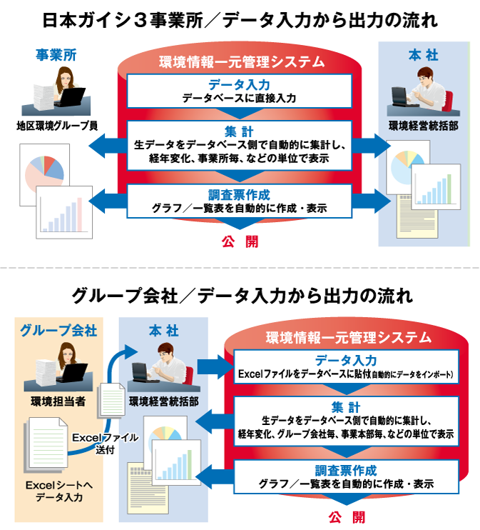 そこで、2006年から始まった第2期環境行動5カ年計画において、これら「環境データの効率的な収集と一元管理、および見える化」を行うことによる、効率的な連結環境管理を目指す取組みの一環として、環境情報一元管理システムの開発が始まりました。