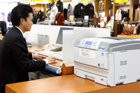 導入メリットがはっきりしたことで、はるやま商事様はSP C721Mのテスト導入を経て、2010年2月に30店舗へ先行導入した。「先行導入店での評判がとてもよかったので、本格導入に踏み切りました。スペースの制約などで設置できない一部の店舗を除いて、2010年夏にほぼ全店に導入しました」(多田様)。