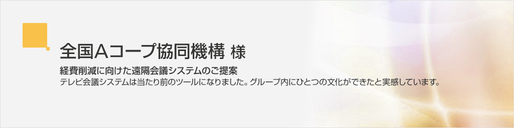 全国Aコープ協同機構様では、コストの削減と情報共有の強化をはかるためテレビ会議システムの導入を検討されていました。そして機種選定にあたり、様々なメーカーのテレビ会議システムを比較検討し、機種選定の条件として三つのポイントを重視しました。