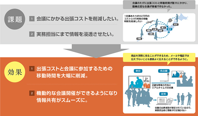 また、これまでの課題のなかでも、とくに深刻だったのがコストの問題。「東京での集合型の会議では、1回の会議あたり約92万円の出張経費がかかり、コスト削減は大きな課題となっていました」。