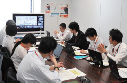 「これまでの会議では、バイヤーが複数人いても代表者しか参加することができませんでしたが、P3000で複数のスタッフが参加できるようになったことで情報共有がスムーズになりました。また、商品を実際見せることもできますし、サンプル品を事前に配ってテレビ会議中に試食したり、メールや電話では伝えきれなかったことも、今は要領よく伝えることができるようになりました」と評価いただきました。