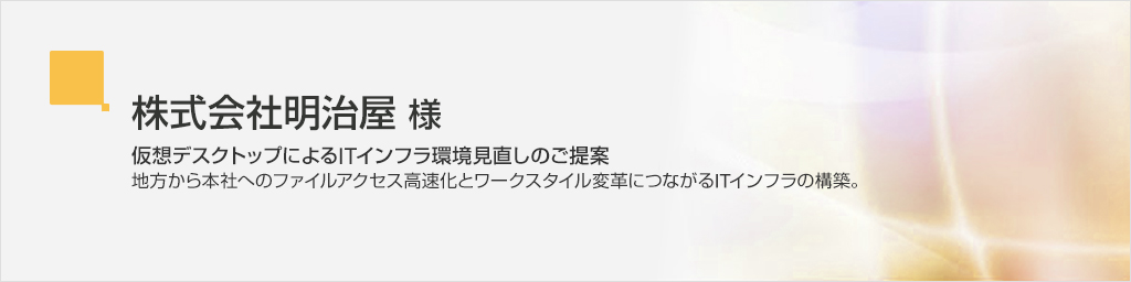 明治屋様の課題解決へ向けて、リコージャパンが提案したのが、本社サーバーにアクセスする環境(*1)の仮想化デスクトップ(*2)による構築でした。選定の理由について、佐藤様は次のように話して下さいました。