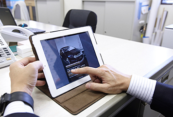 2012年春、同社は全店舗にタブレットを導入した。「最初は使い方に戸惑う社員も多かったのですが、これは触りながら感覚的に覚えるしかないと思いました。社員には、お風呂に入る時以外は、いつも肌身離さず持っているようにと言って配りました(笑)」(髙橋様) タブレットを導入してから、様々なシーンでワークスタイルの変化があったと髙橋様は言う。「全店長が出席する定例会議の時、それまでは本社の私たちが各店舗の数字をまとめて発表用の資料を作成していたんです。今では、各店長たちがタブレットを使って各々の報告、発表をしています。また、購入いただいたお客様に新車を納入する際、記念撮影をして写真をお送りするのですが、それまでは1ヶ月目の点検時に写真をお渡ししていました。今はタブレットで撮影して、そのままお客様にメールでお送りしています。早いし、便利ですね。」(髙橋様)