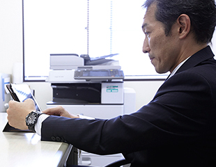 社内でのタブレット活用が進む中、リコーの営業担当者から、「もっとタブレットを使って業務の効率化が図れます」と提案を受けた製品が、クラウドサービス「RICOH e-Sharing Box」だった。同社は以前からリコー製複合機「imagio MP C4002 SPF」を使用していたため、RICOH e-Sharing Boxを使える環境にあった。「リコーの営業担当の方が、社内資料をRICOH e-Sharing Boxの中に保存し、社外からタブレットを使ってその資料を閲覧するというデモンストレーションをしてくれたんです。それを見て、これは使えるなと思って。すぐに導入を決めました。」(髙橋様) タブレットを活用した営業活動をさらに進めていきたいと考えていた同社にとって、リコー営業担当者からのRICOH e-Sharing Boxの提案は、まさにタイムリーだった。