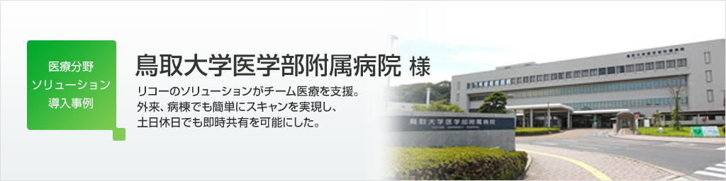 鳥取大学医学部附属病院様は、病院内で発生する膨大な文書のスキャン業務改善と、デジタルカメラで撮影した画像の一元管理が課題になっていた。リコーはデジタル複合機とドキュメント配信システムを組み合わせたソリューションや、バーコード読取機能を搭載したデジタルカメラを提案。医療現場で求められる「真正性」を担保しつつ、院内文書や撮影画像をチーム医療に活用できる仕組みづくりを支援している。