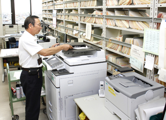 DAISEN2の稼働後、病歴室の職員が医師や看護師の依頼に応じて手術同意書や入院計画書など院内で発生する文書(電子カルテと医療文書作成支援システムから発行されたバーコード付き文書)を専用機でスキャンし、e-文書法に準拠する電子診療録として保存、原本管理してきた。