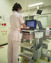 DAISEN3の入札は主に電子カルテ、ネットワーク、インフラに分けて2013年に実施。リコーは電子カルテシステムで使用される複合機やプリンターをはじめ、パソコン、タブレット端末のほか、看護師が端末や血圧計などの医療機器を載せて病棟を移動するワゴンを含めたインフラを一括受注。「スキャニング業務の改善やワゴンなどの課題に対し、リコーは満足する提案をしてくれました」と寺本氏は振り返る。