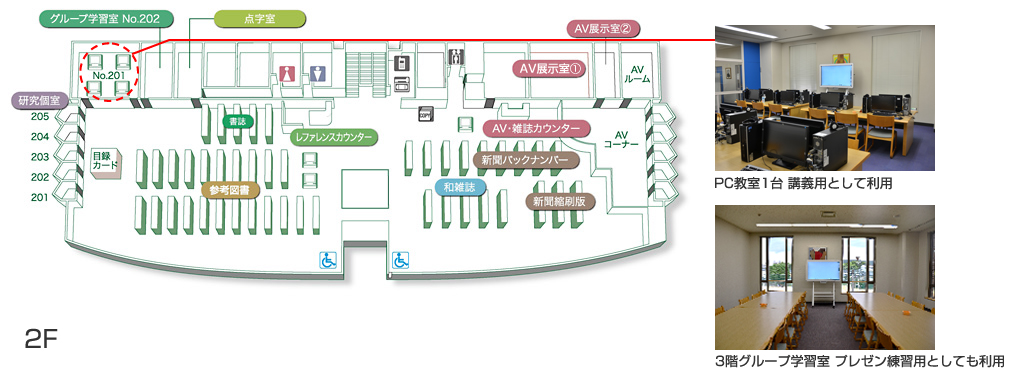 ラーニング・コモンズの設置により、これまで教室で行われてきた、ゼミ・講義・各種セミナーを図書館で実施することが可能になりました。