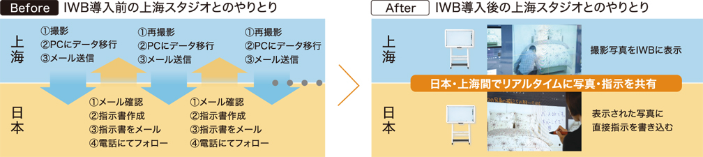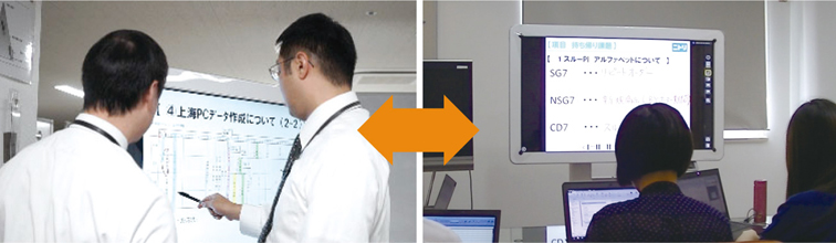 「会議では、東京と上海、双方の会議室に設置されたIWBに、私たちが事前に作成した資料が映し出されます。お互いに同じものを見ながら、直接書き込んで指摘できるので、意思疎通が劇的に向上しました。まるで東京と上海のスタッフが顔を突き合わせて、計画書を練りこんでいるような臨場感があります。その結果、出張が大幅に削減され、メールや電話でのやりとりも減って、その時間を他の業務に充てられるという効果も実感しています。IWB導入により、言葉の問題も払拭できたといえます」