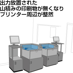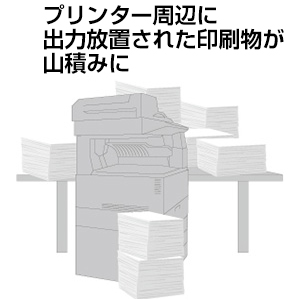 プリンターに放置されたままの印刷物が多く、紙のムダが大きな問題に。