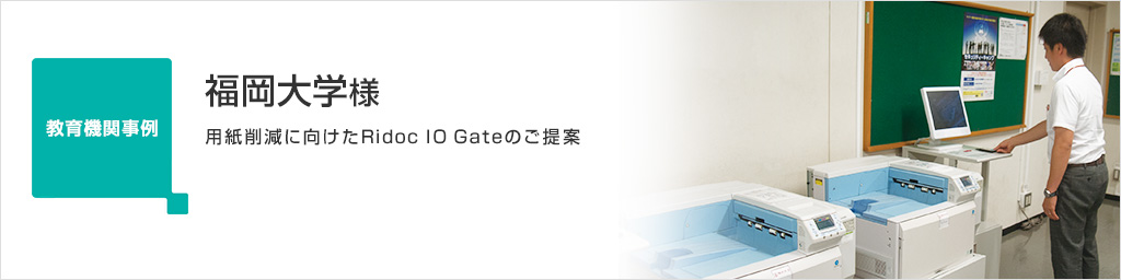 9学部31学科、大学院10研究科34専攻がひとつのキャンパスに集約された一大総合教育研究拠点として、社会から信頼される人材を育成し続けている福岡大学様。かつては多くの学生が無制限に出力するため“印刷用紙のムダ”に頭を悩ませていました。そこで、2005年に当時としては画期的だったポイント課金機能を搭載したRidoc IO Gateをご採択。以降、10年間にわたりバージョンアップを重ねながらご利用いただいています。