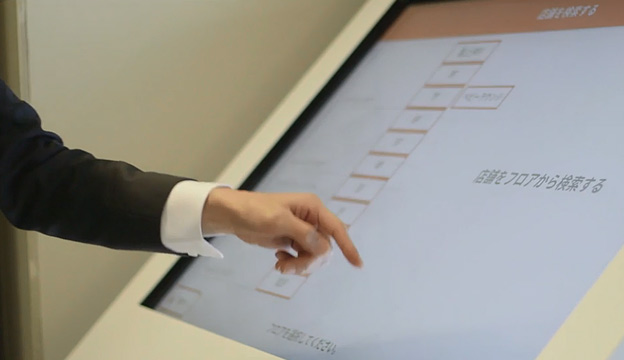 タッチパネル型のデジタルサイネージでは、フロアガイドや、店舗情報などビジュアルでわかりやすく伝えることが可能です。