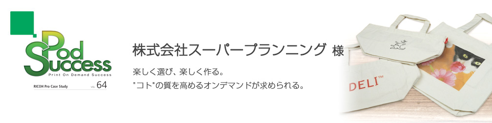 アパレル業のスーパープランニング様は、「世界に一つだけのトートバッグ」を提供するため、RICOH Ri 100を導入。イベント時におけるトートバッグへのオンデマンドプリントサービスやBtoB提案、PRツールとして活用しています。
