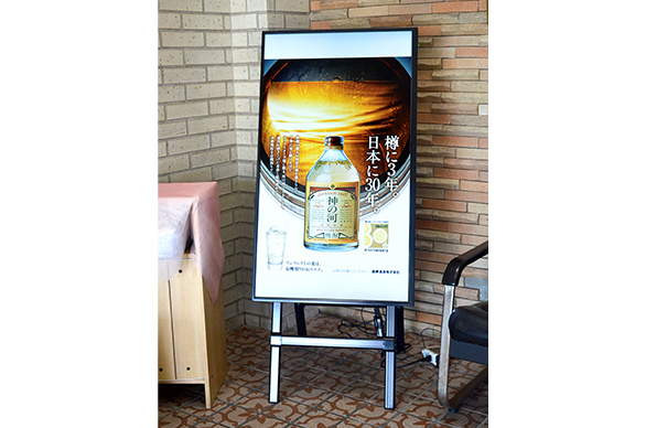 リコーのデジタルサイネージはクラウド型で、インターネット環境があれば場所を問わず設置できる利点を活用して、「明治蔵」でのイベントに使用しました。