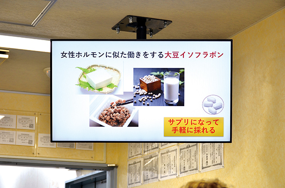 自然と健康意識が高まるような多様な情報を配信しています。(札幌店)