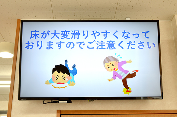 待ち時間対策としては、自然と健康意識が高まるようなコンテンツを配信し、できるだけ有意義な時間をお過ごしいただけるようにしています。また、平均的な待ち時間に合わせてコンテンツも約10分で一巡する構成にしたり、コンテンツに動きを持たせることで、飽きずに見ていただけるよう配慮しています。