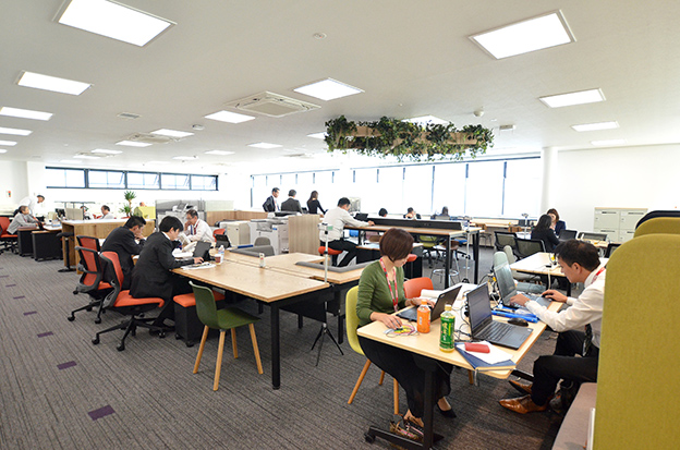 ViCreA 岐阜のオフィス。職種を問わず全従業員のフリーアドレスを実現しています。