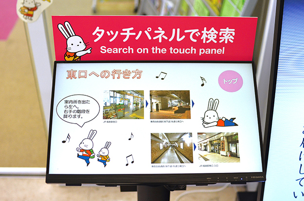 また、特にお問い合わせの多い内容については、タッチパネル式のディスプレイを活用し、画面にタッチして必要な情報にスムーズにアクセスいただけるようにしています。デジタルサイネージにより、心のこもったおもてなしを提供するとともに、リピーターにも満足いただける幅広い情報提供、多様な魅力発信を実現しています。