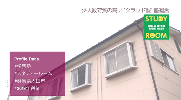 群馬県・太田市で、大学や塾での勤務経験のある代表の西口氏が2019年に創業した学習塾スタディールーム様は、「いつでも塾に学びに来られる」環境と、経験を活かした進路指導、そして ICT 機器・サービスを駆使した授業で、塾競争の激しい太田地区において、常に定員を充足する生徒を集め、塾開設初年度から東京大学をはじめとする有名大学合格者を輩出しています。