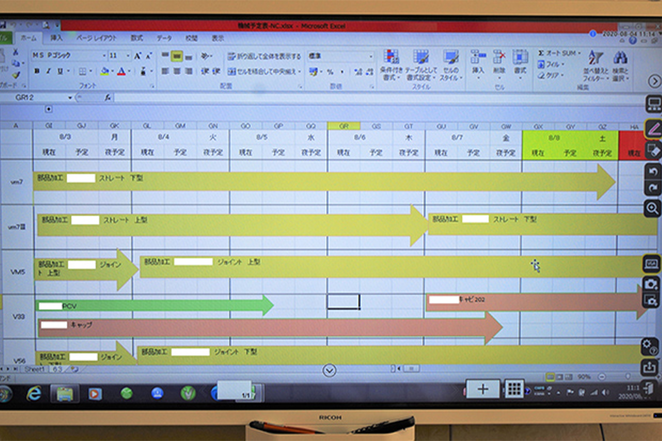 「生産管理ソフトやExcelで作成している工程表をRICOH IWBに表示し、前日からの変更点を書き込みながら全員で最新の進捗を確認しています。ホワイトボードからRICOH IWBになったことで、非常に読みやすくなったと従業員からも好評です。