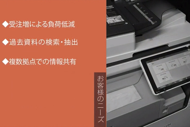また、見積作成時にも課題があったといいます。「同じ部品のリピート発注や、部品の一部を若干変更した部品の発注もよくありますので、見積書の作成の際には過去の見積書や資料を参考にしますが、印刷してファイリングしていたので、見つけ出すだけで20~30分かかることもしばしばありました」(帯刀氏)。