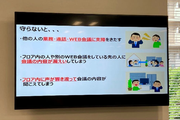 明電興産様では、本社内はもちろん他拠点とのコミュニケーションを活性化するツールとして、IWBとデジタルサイネージを活用されています。それぞれの活用方法について皆様にお話しを伺いました。